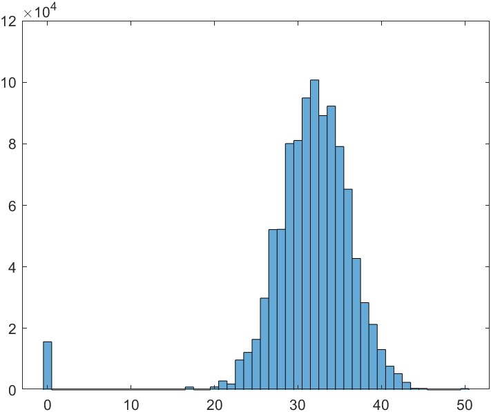 同时,明文每变化1bit,密文的变化情况如图所示(基本符合32的正态分布):